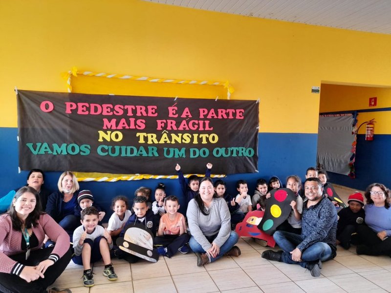 Alunos da educação infantil e fundamental dão exemplo pela segurança no trânsito em Dia Mundial do Pedestre