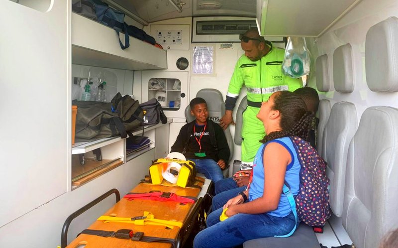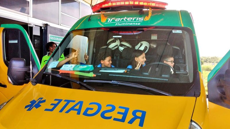 Os alunos também tiveram a oportunidade de conhecer os operadores e a tecnologia empregada no CCO da Arteris Fluminense e ver de perto o telão onde são transmitidas imagens de 107 câmeras de monitoramento da rodovia em tempo real. Outro momento que despertou grande interesse foi a simulação de Atendimento Pré-hospitalar (APH) feita pelos profissionais da São Francisco Resgate – empresa que presta serviço à Arteris Fluminense. Com a participação de um dos estudantes, a equipe demostrou como é o trabalho de emergência nas estradas. As crianças ainda conheceram os equipamentos da Polícia Rodoviária Federal, o interior da viatura de resgate e finalizaram o passeio recebendo mudas de suculentas em celebração ao Dia da Árvore.