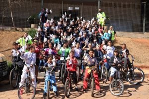 O passeio aconteceu entre 9h30 e 11h30. Os estudantes receberam orientações sobre comportamento seguro na bicicleta, regras de trânsito e a importância do uso do EPI para garantir a integridade física dos ciclistas. Também foram entregues squeezes e folders educativos aos alunos.