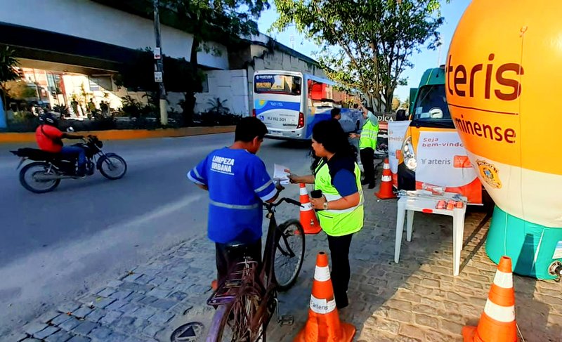 Arteris Fluminense realiza ações educativas para ciclistas e pedestres em Tanguá