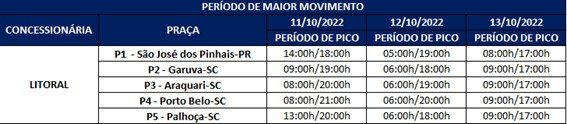 Planeje sua viagem, incluindo pontos de parada, e confira abaixo dias e horários de maior movimento: