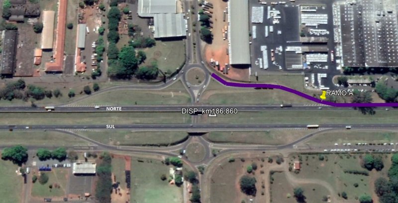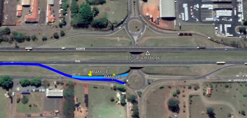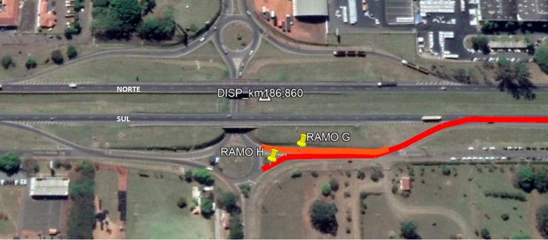 O local é uma alça com dois acessos, sendo um para retorno do dispositivo do km 186+860m sentido sul (Ramos H) e outro acesso da marginal (Ramo G) do município. Serão realizados os fechamentos das alças de acesso do dispositivo no sentido sul. Alternativas: Os usuários que estiverem trafegando no sentido norte e os usuários do distrito industrial que necessitarem realizar o retorno no dispositivo ou acessar a rodovia, deverão utilizar o próximo dispositivo a 1500 metros, pelo sentido norte.