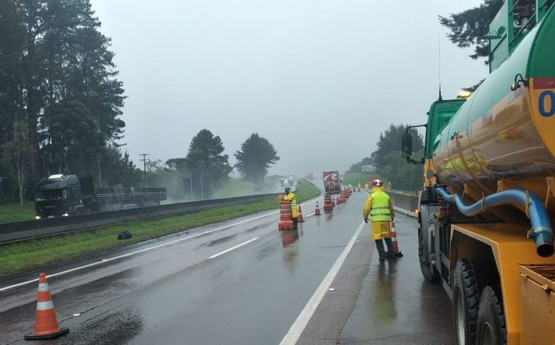 Equipes da concessionária atuam no local - com sinalização para orientação aos motoristas