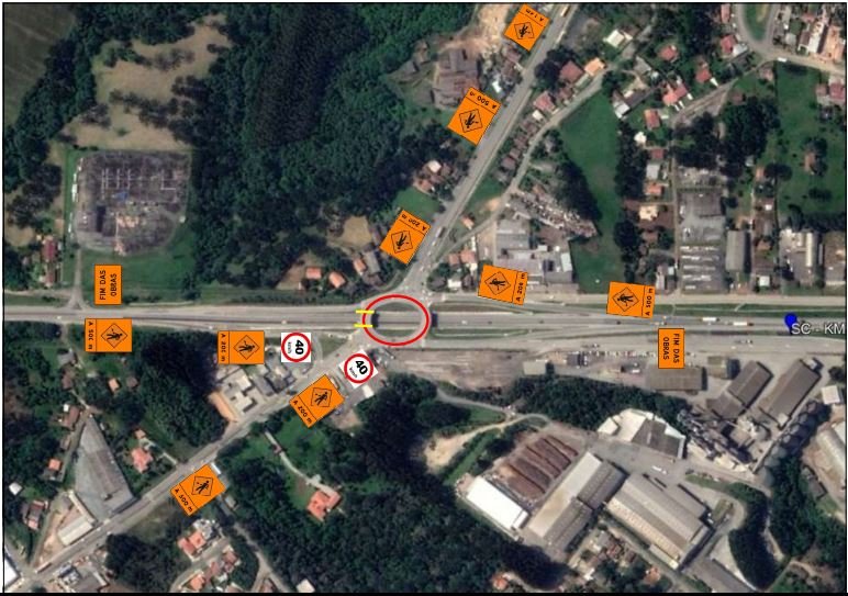 Para possibilitar a realização dos serviços com segurança será necessário o bloqueio da rótula central do viaduto, desta forma os movimentos de acesso ao município pela pista norte da BR-116, via marginal e também através da BR-280 – deverão ser realizados no km 1,2 (trevo da Dirmave). A concessionária implantará placas de sinalização das obras temporárias, de forma a indicar os locais de acesso e retorno.