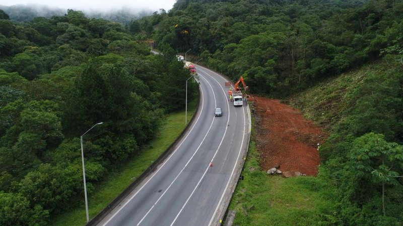 São José dos Pinhais – no km 98,5 da pista sentido sul – melhoria de acesso com bloqueio de uma faixa.