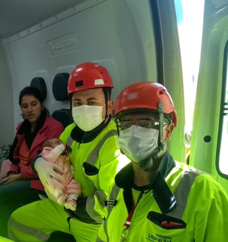 Na segunda-feira, Socorristas da Arteris Litoral Sul realizam salvamento de bebê recém-nascido engasgado com leite materno, em Joinville