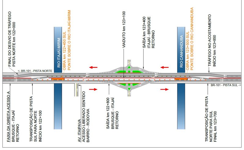 Além das restrições na rodovia, haverá bloqueio para acesso à Rua Itaipava via BR-101 e também sob a ponte do Rio Itajaí-Mirim. Somente a saída da Rua para a rodovia permanecerá liberada. A alternativa de acesso ao bairro Itaipava é via SC-486/Rodovia Antônio Heil.