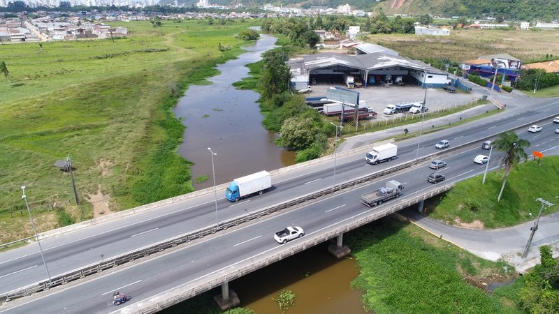 Obras com desvio de tráfego nas pontes sobre o Rio Itajaí-Mirim e Canhanduba iniciam neste domingo. Na foto, ponte sobre o Rio Itajaí-Mirim no km 122,4 da BR-101