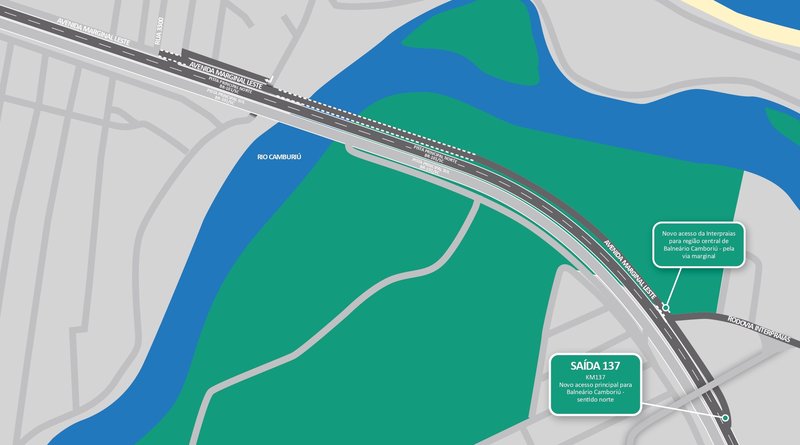 A inauguração desta ponte também traz nova configuração para o trânsito no local. A partir de agora, a saída 137 passa a ser a principal entrada para Balneário Camboriú no sentido norte da BR-101/SC. Por meio dela, o motorista segue pela via marginal, passa pela nova ponte, e prossegue pela rua lateral até o acesso para região central do município.