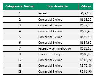 Confira a tabela com os novos valores:
