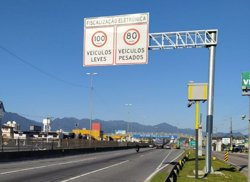 Dispositivos de controle de velocidade estabelecem corredor linear - com limite de 100 km/h para veículos leves e 80 km/h para veículos pesados