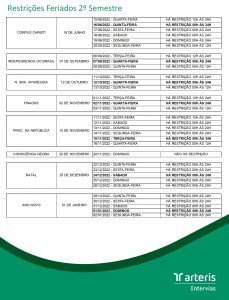 Confira abaixo o calendário de restrições para 2º semestre de 2022: