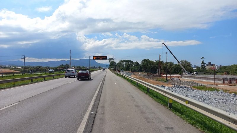 O painel encontra-se atualmente no km 218,5 da pista norte – local onde avançam as obras de construção do trevo de interseção do Contorno com a BR-101/SC. O dispositivo será então removido do local, para que as atividades de construção do trevo possam avançar sem interferência.