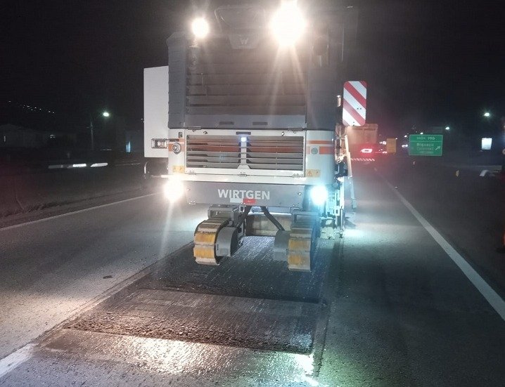 Trabalhos ocorrem em período noturno - para manutenção do pavimento no trevo de interseção entre as rodovias BR-101/SC e BR-470/SC
